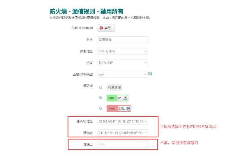 設置思路:第一時間添加規則禁止工控機訪問所有網絡,然后再添加規則只允許工控機訪