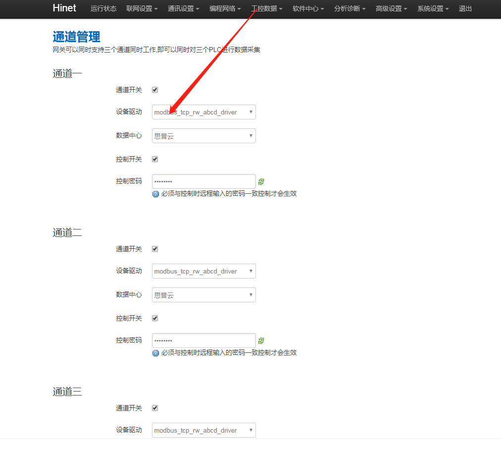 1. 點表協議與網關后臺的驅動協議不一致,以思普云平臺采集數據為例,思普云平臺的產品管理處查看產品的協議名稱。進網關后臺“工控數據 - 通道管理”處查看設備驅動。點表協議必須與網關后臺驅動協議一致。