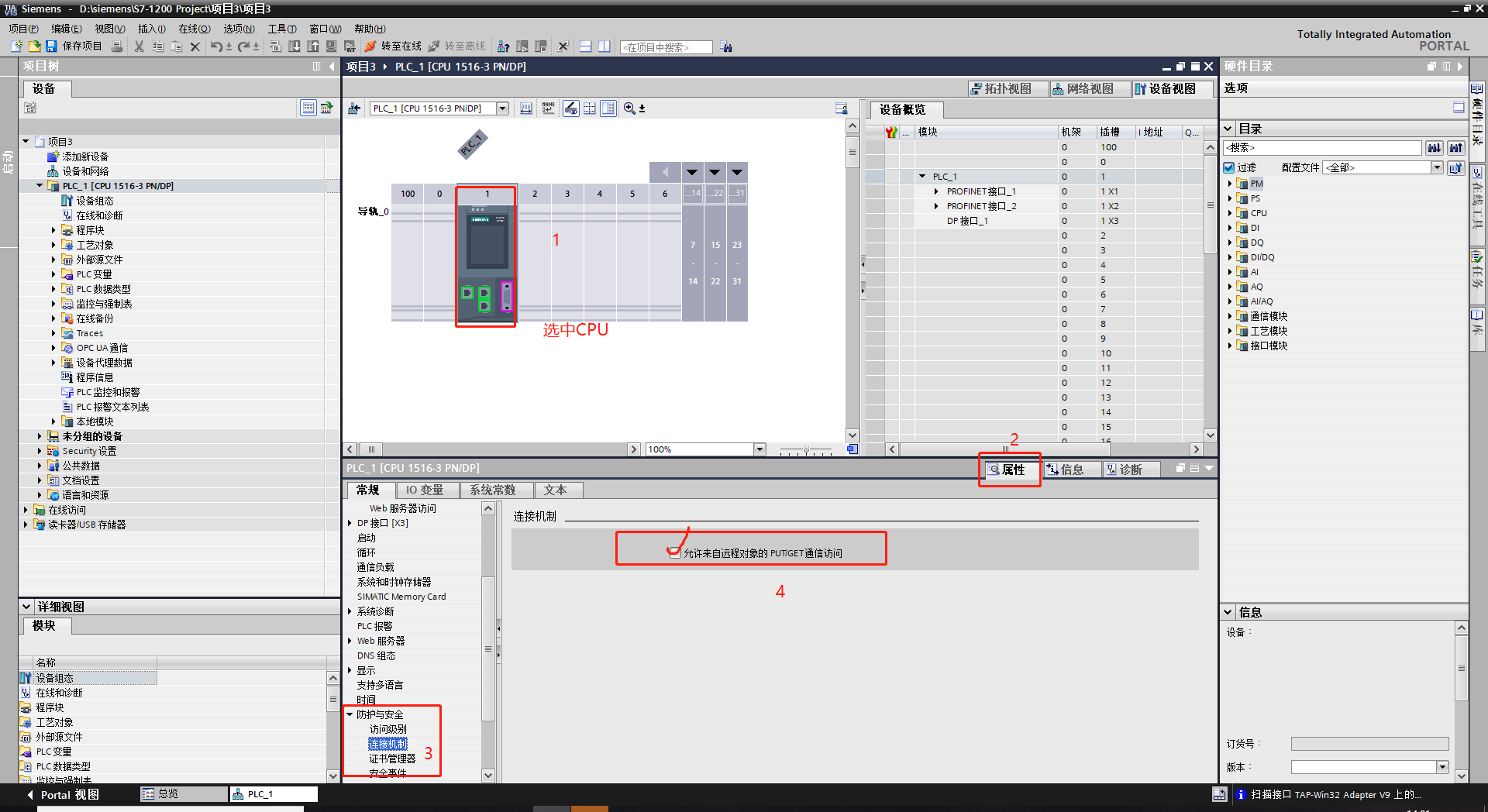 1.進入博圖,“常規(guī)-保護”,連接機制勾選“允許從遠程伙伴使用PUT/GET通信訪問”,重啟PLC。