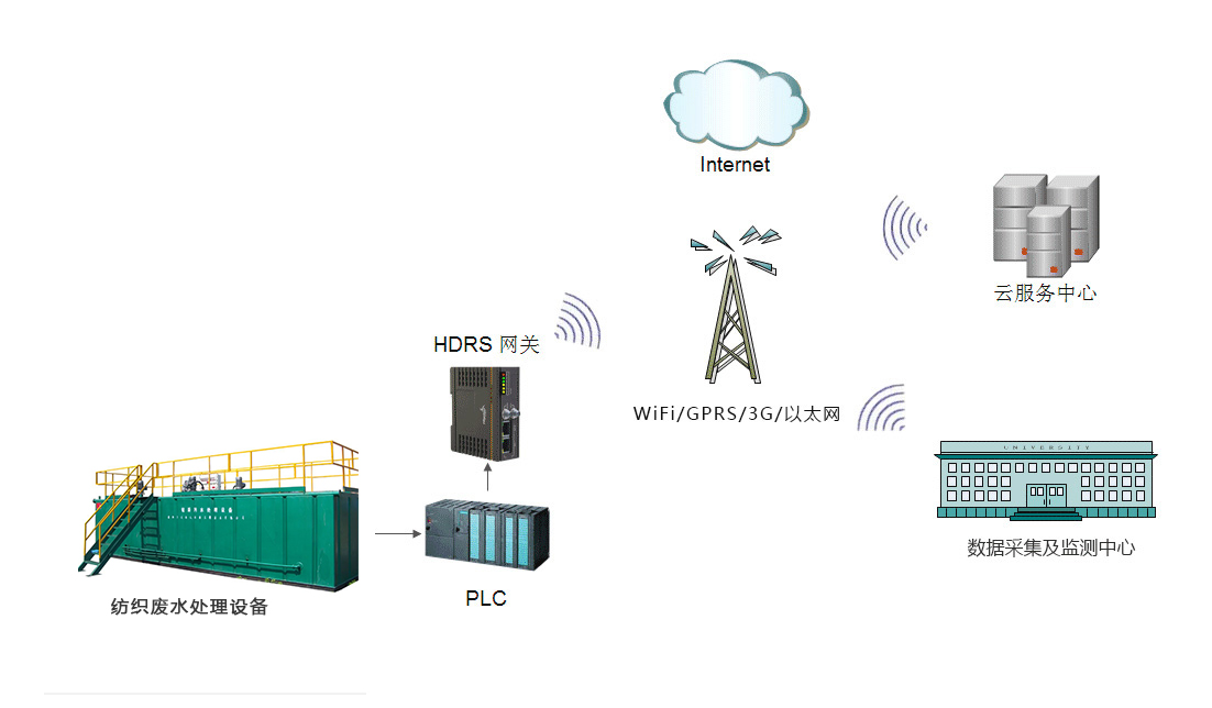 mile米乐集团智通自主研發的一款基于PLC遠程監控的紡織廢水處理系統順利獲得HDRS遠程安全pcl通訊網關及3GRTU等設備監控各個環節的傳感器和各種設備的PLC或其他控制器,并順利獲得WIFI、3G、4G、5G以太網等各種通訊方式將數據采集至HDRS設備云遠程綜合管理平臺或組態王等上位機上,順利獲得短信預警、視頻監控等從而實現并節省大量的人力物力以及減少誤差的引入,使處理過程更加科學更加合理,提高了工作效率和工作質量。