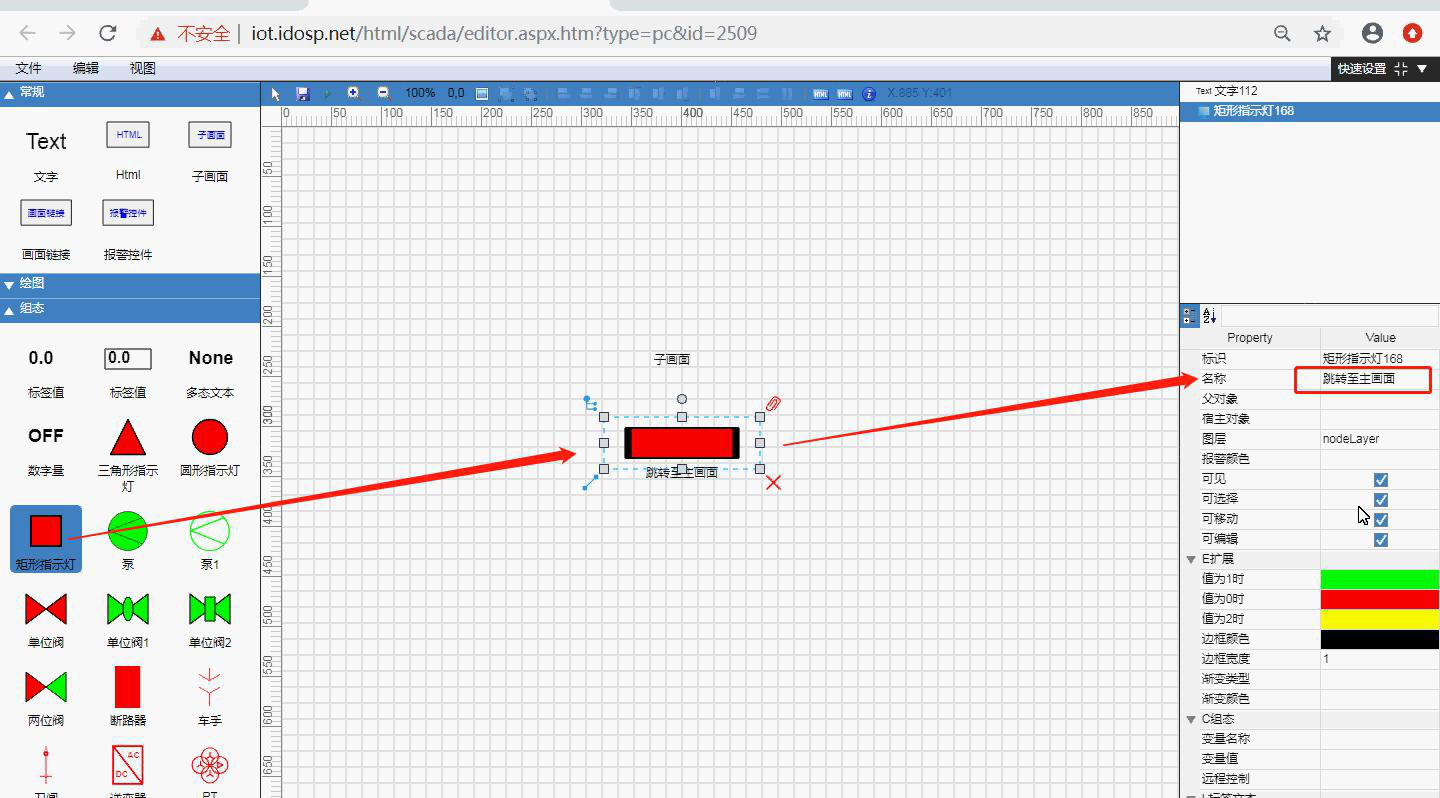 思普云設備組態子畫面跳轉使用教程說明,另一方面順利獲得動畫、曲線等方式將現場數據以動態體現在圖形界面,操作圖形界面即可控制現場設備。